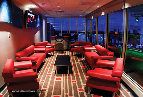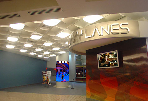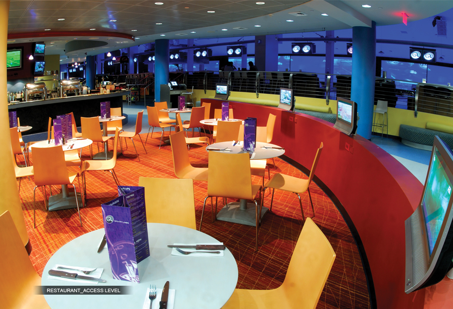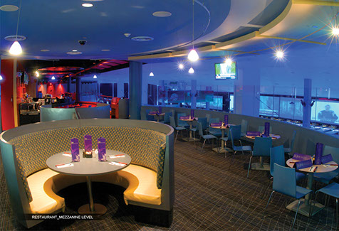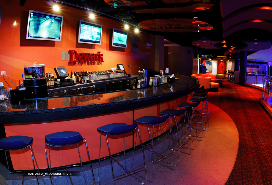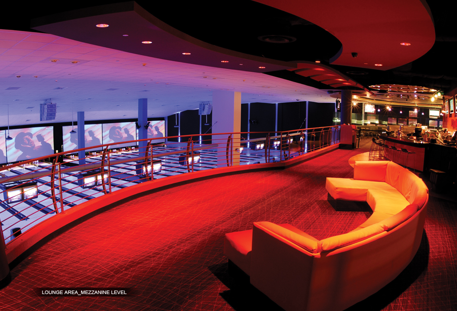 Two Level Entertainment Complex featuring a state of the art bowling center, restaurants (2), bars (3), lounges for social and corporate events, dance area, DJ floating booth, and private Skyboxes.